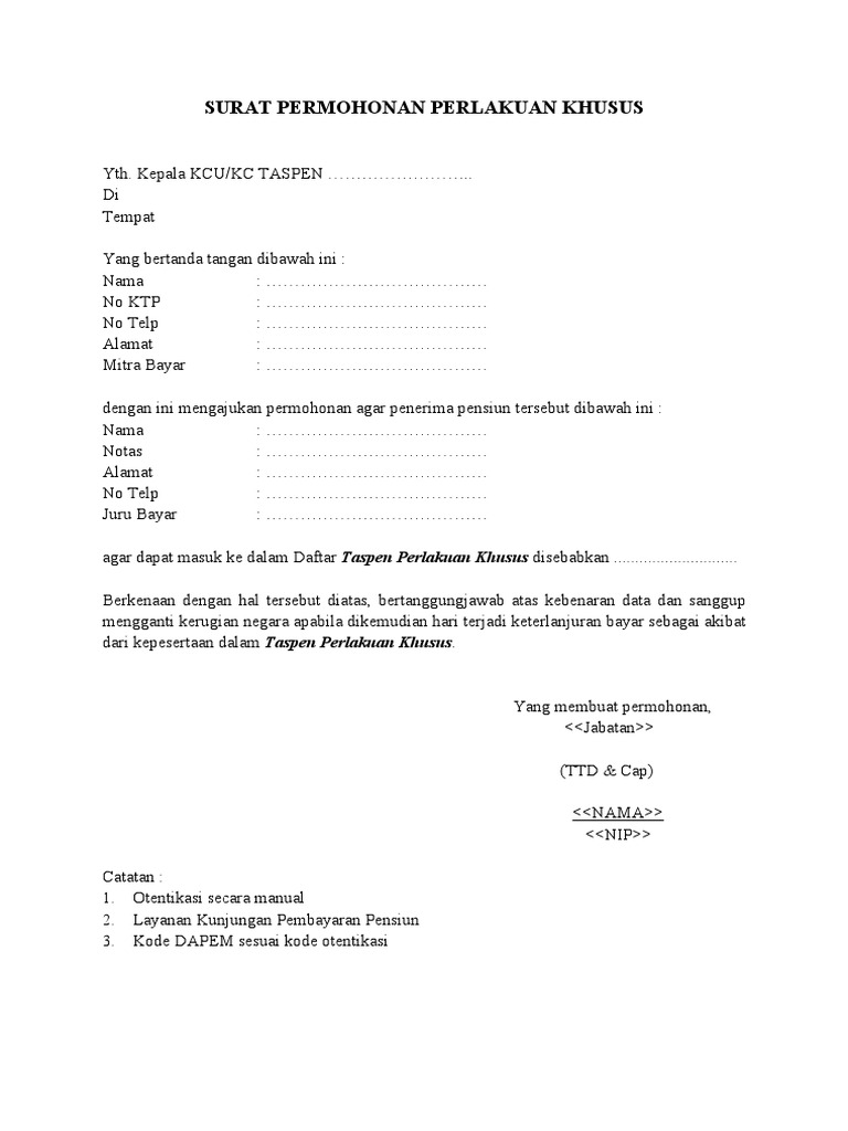 15 Surat Permohonan Perlakuan Khusus Pdf